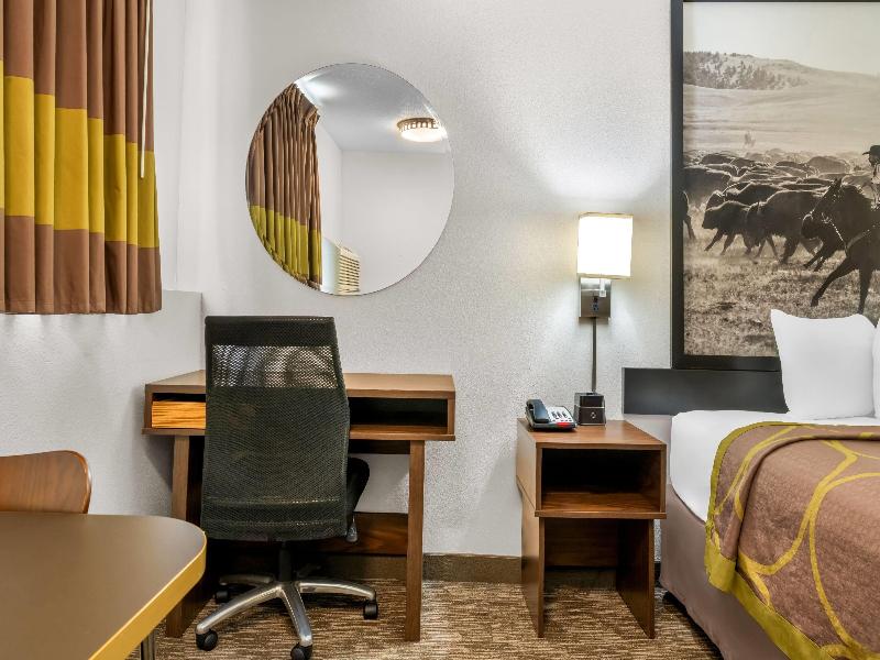 Te damos la bienvenida al Super 8 Custer, en las pintorescas Black Hills de Dakota del Sur. Nuestro hotel libre de humo está convenientemente ubicado cerca de las principales atracciones de Black Hills, como Mount Rushmore, Crazy Horse Memorial, Jewel Cave, Wind Cave y Custer State Park. Después de un día de exploración, estaciona tu auto, camioneta o RV en nuestro amplio y seguro estacionamiento, y deja que nuestro amable personal te ayude a encontrar la habitación perfecta para ti y tu familia. Disfruta de una amplia selección de canales de televisión por cable con control remoto, incluyendo HBO, ESPN, Fox News y Disney. Relájate en una de nuestras suites con jacuzzi, descansa junto a nuestra piscina climatizada cubierta o sumérgete en el jacuzzi. Acompáñanos por la mañana para disfrutar de nuestro desayuno caliente SuperStart gratuito, junto con tu elección de café, té y jugo. Camas plegables disponibles por 6, 36 $ (impuestos incluidos). Hay refrigeradores disponibles en algunas habitaciones por 5, 30 $ (impuestos incluidos). Se permite un máximo de dos mascotas por una tarifa no reembolsable de 15 $ por noche, más una tarifa de limpieza de 50 $, si corresponde. Los animales de servicio definidos por la ADA son siempre bienvenidos.