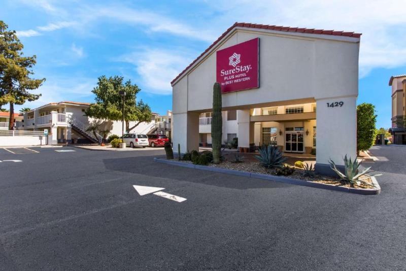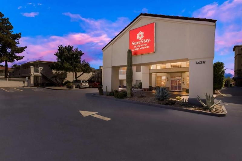 El SureStay Plus by Best Western Tempe University ofrece 118 habitaciones y suites en Tempe, Arizona, a pocos minutos de la Universidad Estatal de Arizona, el área metropolitana de Phoenix y Scottsdale. Disfrute de un desayuno buffet completo de cortesía, una piscina y jacuzzi al aire libre, lavandería para huéspedes y un putting green. Las habitaciones cuentan con refrigeradores, microondas, cafeteras, planchas y tablas de planchar, amplios armarios, televisores de pantalla plana con cable premium y escritorios. Las suites para estancias prolongadas incluyen cocinas pequeñas, sala de estar y estufas. Entre las atracciones cercanas se encuentran el lago Tempe Town, el Aeropuerto Internacional Phoenix Sky Harbor, Tempe Marketplace, el Parque Papago, el Zoológico de Phoenix, el Jardín Botánico del Desierto, el Talking Stick Resort, el casco antiguo de Scottsdale y numerosos campos de golf. Hay una gran variedad de complejos de entretenimiento, restaurantes y tiendas en un radio de 8 kilómetros. Solo se aceptan las principales tarjetas de crédito; no se acepta efectivo, y se requiere un depósito de $200 al momento del check-in.