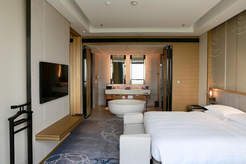 Si decides alojarte en Suzhou Marriott Hotel Taihu Lake, te encontrarás en una fantástica zona de Suzhou (Wuzhong), estarás a 2 min en coche de Área panorámica de Taihu Yuyangshan en Suzhou y a otros 10 min de Parque forestal nacional Dongwu de Qionglongshan. Además, este hotel de lujo se encuentra a 17, 7 km de Linwudong Scenic Resort y a 23, 6 km de Shigong Mountain. . Sumérgete en una de las 2 piscinas al aire libre, o disfruta de otras instalaciones recreativas, como un centro de bienestar y una sauna. Encontrarás también conexión a Internet wifi gratis, servicios de conserjería y servicio de cuidado infantil (de pago). . Te sentirás como en tu propia casa en cualquiera de las 275 habitaciones con estación de conexión para iPod y minibar. Las camas cuentan con colchones con una capa de acolchado adicional para descansar plácidamente. La conexión wifi gratis te permitirá estar al tanto de todo. Para tus momentos de ocio, tendrás una televisión LCD de 49 pulgadas con canales por cable. El baño privado con bañera y ducha independientes está provisto de artículos de higiene personal gratuitos y secadores de pelo. . Si tienes ganas de comer algo de cocina china, ve a Man Ho, uno de los 3 restaurantes de este hotel, o simplemente llama al servicio de habitaciones las 24 horas. Qué mejor forma de acabar el día que con una bebida en el bar o lounge. Se ofrece un desayuno bufé todos los días de 06:30 a 11:00 con un coste adicional. . Tendrás conexión a Internet por cable gratis, un centro de negocios y un servicio de limusina o coche con chófer a tu disposición. ¿Estás organizando un evento en Suzhou? En este hotel tienes a tu disposición 3560 metros cuadrados de espacio con zona para conferencias y salas de reuniones. Hay un aparcamiento sin asistencia gratuito disponible. . Las distancias se expresan en números redondos.