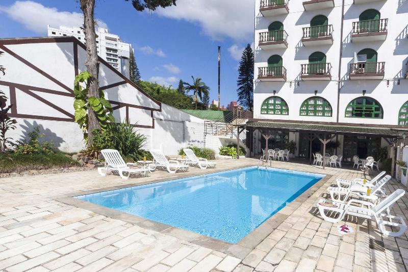 Situado en el centro de Joinville, este hotel ofrece alojamiento con un estilo alpino tradicional de inspiración alemana. Los huéspedes tienen acceso a un restaurante y bar en las instalaciones, una piscina al aire libre y un gimnasio. Todas las habitaciones están equipadas con aire acondicionado, baño privado, wifi gratis y balcón, algunas de las cuales ofrecen vistas a la ciudad. Hay habitaciones Standard, Deluxe y Superior disponibles. El hotel ofrece aparcamiento gratuito en las instalaciones y recepción 24 horas. Entre los lugares de interés cercanos se encuentran el centro comercial Mueller, a dos minutos a pie, y la Via Gastronómica, a un minuto a pie del establecimiento. El parque Expoville se encuentra a 4, 8 km en coche.