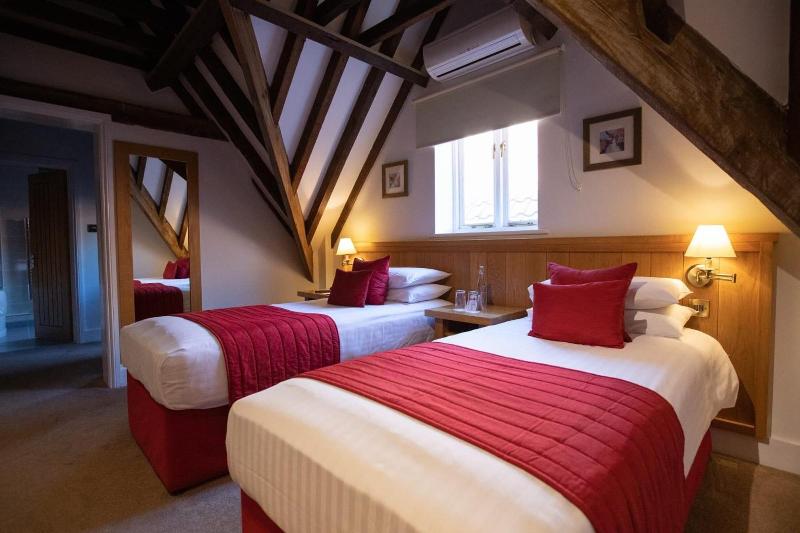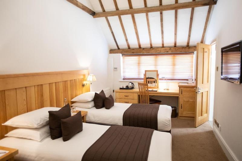 Alójate en el Tewin Bury Farm Hotel en Hertford, en la ribera de un río, a 15 minutos en coche de la University of Hertfordshire y de las Welwyn Roman Baths. Este hotel de 4 estrellas está a 9, 6 km de Hatfield House y a 13, 1 km del Paradise Wildlife Park. Disfruta de las vistas desde la terraza y el jardín y aprovecha las comodidades, como la conexión inalámbrica a internet gratuita. Este hotel también ofrece servicio de organización de bodas y un área de pícnic. Tendrás a tu disposición servicios de tintorería/lavandería y recepción disponible las 24 horas. Este hotel pone a tu disposición 9 salas de reuniones para eventos. Hay un aparcamiento sin asistencia gratuito disponible en las instalaciones. Degusta la gastronomía británica en The Cow Shed, un restaurante con un bar o lounge, o aprovecha el servicio de habitaciones las 24 horas. Se sirve un desayuno inglés de lunes a viernes de 7:00 a 10:00 y los fines de semana de 8:00 a 10:00, con cargo adicional. Te sentirás como en casa en una de las 45 habitaciones con aire acondicionado, pantallas planas y conexión inalámbrica a internet gratuita. La programación digital te mantendrá entretenido. El baño cuenta con bañera o ducha y artículos de tocador gratuitos. Entre las comodidades, se incluyen caja fuerte, escritorio y servicio de limpieza diario.