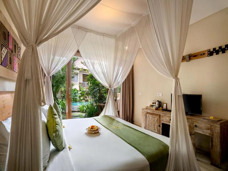 The Alena Resort está estratégicamente ubicado en la popular zona de Ubud. Este alojamiento ofrece una amplia gama de comodidades para hacer de su estancia una experiencia agradable. Este alojamiento destaca sus Wi-Fi gratis en las habitaciones, Seguridad 24h, punto de recarga para coches, capilla, limpieza diaria de entre sus servicios. Todas las habitaciones están diseñadas y decoradas para hacerte sentir como en casa; algunas de ellas cuentan con televisión de pantalla plana, perchero, café instantáneo de cortesía, té de cortesía, sábanas. Para hacer aún más placentera tu estancia, este establecimiento ofrece instalaciones recreativas tales como rutas de senderismo, sala de yoga, piscina al aire libre, spa, masajista. No importa cuáles son tus razones para visitar Bali, The Alena Resort hará que te sientas como en casa.