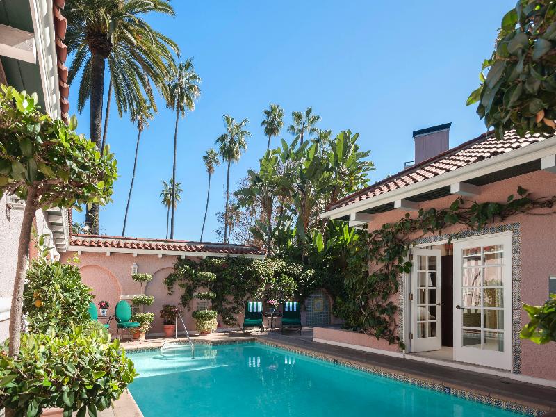 The Beverly Hills Hotel is a luxury, five-star hotel, located on Sunset Boulevard in the center of Beverly Hills and surrounded by 12 acres of lush, tropical gardens, exotic flowers, and private walkways. Providing privacy and tranquility in a truly residential setting, The Beverly Hills Hotel is within easy access to the business and entertainment centers of Los Angeles, Century City, Rodeo Drive, and many of the Hollywood studios. The hotel is just a 35-minute drive from Los Angeles International Airport. Referred to locally as \"The Pink Palace\" The Beverly Hills Hotel is a place to see and be seen, to catch glimpses of famous faces, or to revel in splendid luxury. What makes The Beverly Hills Hotel stand out is its superlative combination of service, a location that offers guests privacy, yet in the heart of a city, and a refreshed facility that, while faithful to the hotels architectural and interior design traditions, is more dramatically beautiful than ever.