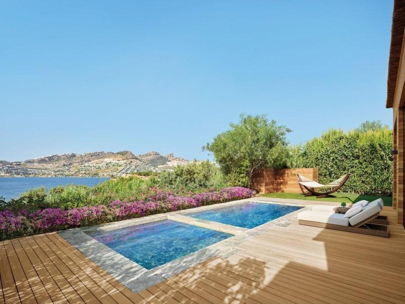 Ubicado en Bodrum, The Bodrum EDITION ofrece una escapada de lujo. A poca distancia en coche se encuentran atracciones como el Mausoleo de Halicarnaso, Bodrum Marina, los Molinos de Viento de Bodrum y el Castillo de Bodrum. Disfruta de la relajación en el spa de servicio completo con masajes, tratamientos corporales y faciales, o aprovecha la discoteca, la piscina al aire libre y la bañera de hidromasaje. El hotel cuenta con 108 habitaciones equipadas con minibar, cafeteras exprés y camas Tempur-Pedic con ropa de cama de primera calidad. Cada habitación también incluye un balcón privado, TV LED y wifi gratuito. Saborea la cocina mediterránea en BRAVA, uno de los tres restaurantes del hotel, o aprovecha el servicio de habitaciones las 24 horas. Diariamente se ofrece una recepción gratuita y los huéspedes pueden relajarse en el bar/salón, el bar de playa o el bar junto a la piscina. Las comodidades de negocios incluyen un centro de negocios, servicio de limusina/coche urbano y registro de salida exprés. Con más de 1100 metros cuadrados de espacio para eventos, incluidas seis salas de reuniones, el hotel también es ideal para organizar eventos.