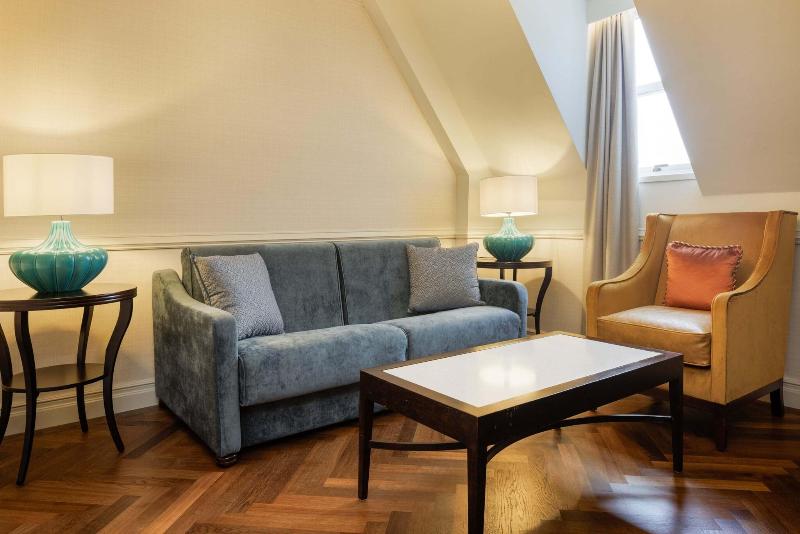 Contacta siempre con el hotel si necesitas una habitación comunicada. The Caledonian es uno de los lugares más emblemáticos de Edimburgo. Situado con orgullo en el extremo oeste de Princes Street, este antiguo edificio victoriano de la estación de tren se encuentra a la sombra del imponente Castillo de Edimburgo. Su reputación de estilo y excelencia ha atraído a visitantes internacionales y personalidades destacadas durante más de cien años. Admira algunas de las mejores vistas de Edimburgo desde nuestras 231 habitaciones y suites y cena en Dean Banks at The Court. En The Caledonian Edinburgh, experimenta la grandeza de The Lounge, antiguo vestíbulo y taquilla de la estación, ahora un paraíso para el té de la tarde y elegantes copas por la noche. Disfruta de algunos de los mejores whiskies escoceses y cócteles de autor en The Caley Bar, o date un capricho en el Spa at The Caledonian, un santuario de lujo y relajación, que alberga una lujosa piscina, sauna, baño de vapor, jacuzzi y dos gimnasios. The Caledonian Edinburgh es uno de los lugares más espléndidos que Edimburgo tiene para ofrecer para reuniones, eventos y bodas. Desde su inauguración en 1903, The Caledonian Edinburgh ha albergado numerosos eventos de prestigio, desde bodas extravagantes y fiestas repletas de estrellas, hasta lujosas reuniones corporativas y grandes banquetes.