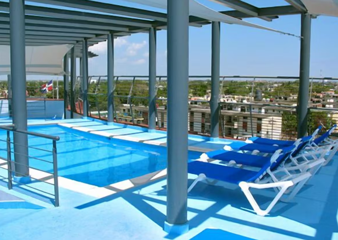 Este hotel urbano está situado en una zona residencial de Santo Domingo, a solo unos minutos del centro de la ciudad y del aeropuerto internacional de Las Américas.Se trata de un hotel con aire acondicionado que cuenta con 50 habitaciones, casino, bar, discoteca, restaurante y peluquería. En el vestíbulo encontrará servicio de salida y recepción 24 horas, así como periódicos, pero el hotel dispone, además, de unas excelentes instalaciones para conferencias, de servicio de habitaciones y de lavandería. Si llega en coche, podrá dejarlo en el aparcamiento o el garaje y hay habitaciones disponibles para no fumadores.Cada habitación viene con las siguientes comodidades estándar: conexión a Internet gratuita, aire acondicionado, TV vía satélite, control de la temperatura, cortinas oscuras, minibar, radio, set de plancha (a petición) y teléfono de línea directa para llamadas al exterior. Los cuartos de baño privados están provistos de albornoces, artículos de aseo de diseño, ducha y bañera combinadas y secador de pelo. Las habitaciones tienen también terraza.El hotel cuenta con piscina dotada de tumbonas.Hay restaurante y sirve un desayuno continental, bufet de almuerzo y servicio a la carta y de menú, así como menú o servicio a la carta a elegir para la cena.
