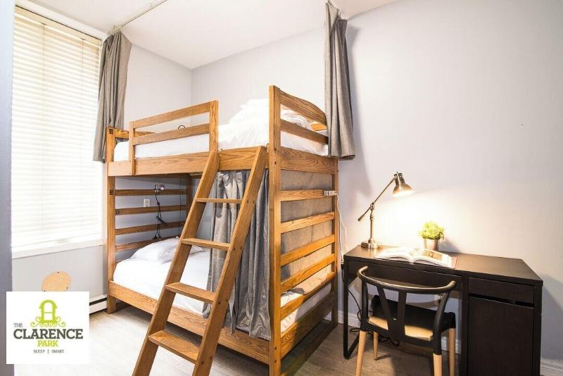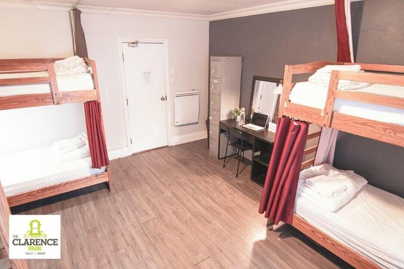 Ubicado en Toronto (Toronto Entertainment District), The Clarence Park se encuentra a 10 minutos a pie de la CN Tower y del Rogers Centre. Este hostal está a 1, 5 km de Ripley's Aquarium of Canada y a 2, 1 km del Hockey Hall of Fame. Disfruta de las vistas desde la terraza en la azotea y aprovecha servicios como conexión inalámbrica a internet gratuita y una sala de estar común. Este hostal también ofrece asistencia turística y para la compra de entradas y parrillas para barbacoa. Los servicios destacados incluyen una estación de computadoras, periódicos gratuitos en el vestíbulo y personal multilingüe. Hay estacionamiento propio (de pago) disponible en el establecimiento. Termina tu día con una bebida en el bar/salón. Siéntete como en casa en una de las 12 habitaciones con aire acondicionado y microondas. Prepara tus comidas en la cocina compartida. Tienes conexión inalámbrica a internet gratuita para mantenerte conectado. Las comodidades incluyen caja fuerte y escritorio, y el servicio de limpieza se realiza a diario.