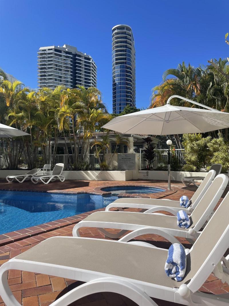 Crest Apartments es un resort de 4, 5 estrellas que ofrece apartamentos de dos dormitorios con orientación norte, apartamentos de un dormitorio con magníficas vistas al sur del interior y de Surfers Paradise, y un penthouse de tres dormitorios con vistas panorámicas de 360 grados que abarcan todos los paisajes de Gold Coast.