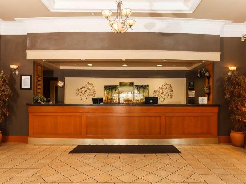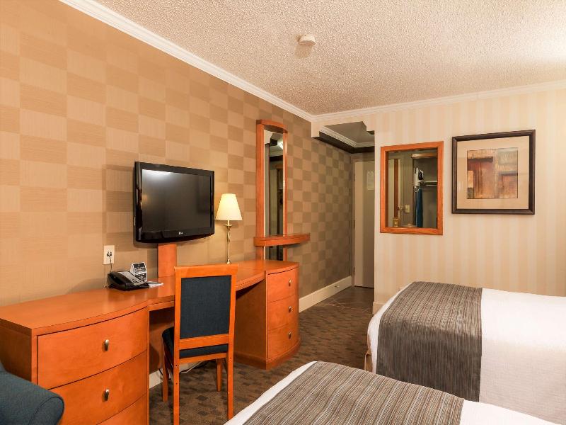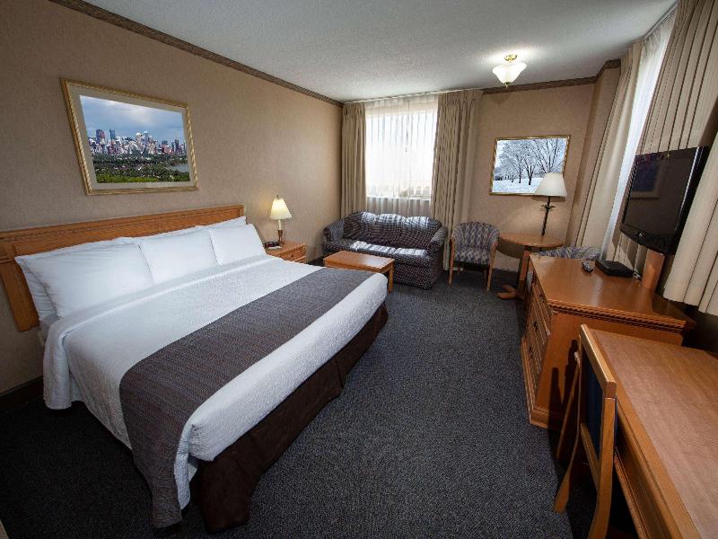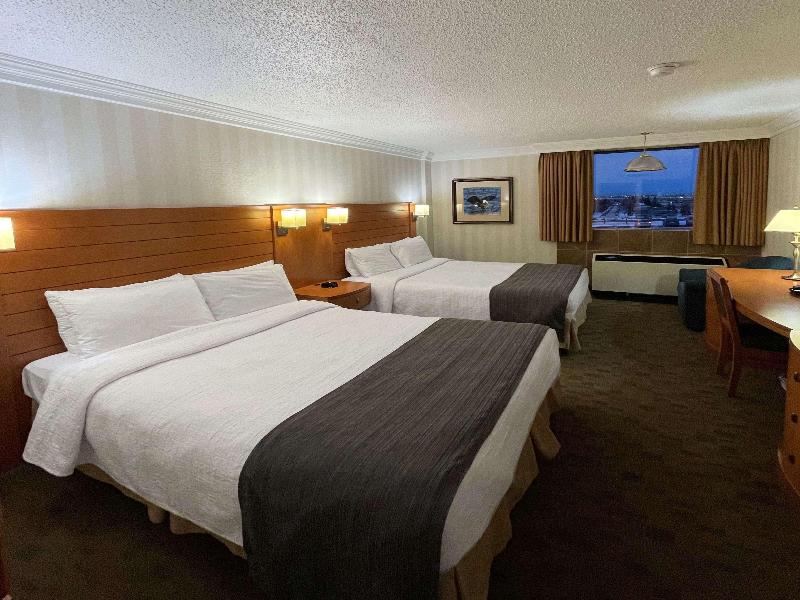 Ubicación del establecimiento Si te hospedas en The Glenmore Inn & Convention Centre, en Calgary (sudeste de Calgary), estarás a 10 minutos en auto de Chinook Centre y 17 Avenue SW. Este hotel ideal para familias se encuentra a 9. 4 km de Heritage Park Historical Village y a 9. 6 km de Scotiabank Saddledome. Habitaciones Ponte cómodo en una de las 169 habitaciones con aire acondicionado, refrigerador y televisión de pantalla plana. El acceso a internet por cable y wifi gratuito te mantendrá conectado, y la programación por cable te ofrece entretenimiento. Los baños privados con ducha y bañera combinadas están equipados con artículos de tocador gratuitos y secadores de pelo. Las comodidades incluyen teléfonos, además de escritorios y periódicos gratuitos. Servicios No te pierdas las numerosas opciones recreativas, como una piscina cubierta, un tobogán acuático y una bañera de hidromasaje. Este hotel estilo art déco también ofrece acceso inalámbrico a internet gratuito, servicios de bodas y una chimenea en el vestíbulo. Restaurantes Come algo en Garden Court Buffet, uno de los 3 restaurantes del hotel, o quédate y aprovecha el servicio a la habitación (durante horarios limitados). También hay refrigerios disponibles en la cafetería. Sacia tu sed con tu bebida favorita en el bar o lounge. Se sirve desayuno con cargo. Servicios de negocios y otros Tendrás centro de negocios abierto las 24 horas, check-out exprés y periódicos gratuitos en el vestíbulo a tu disposición. ¿Estás planeando un evento en Calgary? Este hotel tiene 15, 000 metros cuadrados de espacio que consta de un centro de conferencias y una sala de reuniones. Hay estacionamiento sin valet parking gratuito en las instalaciones.