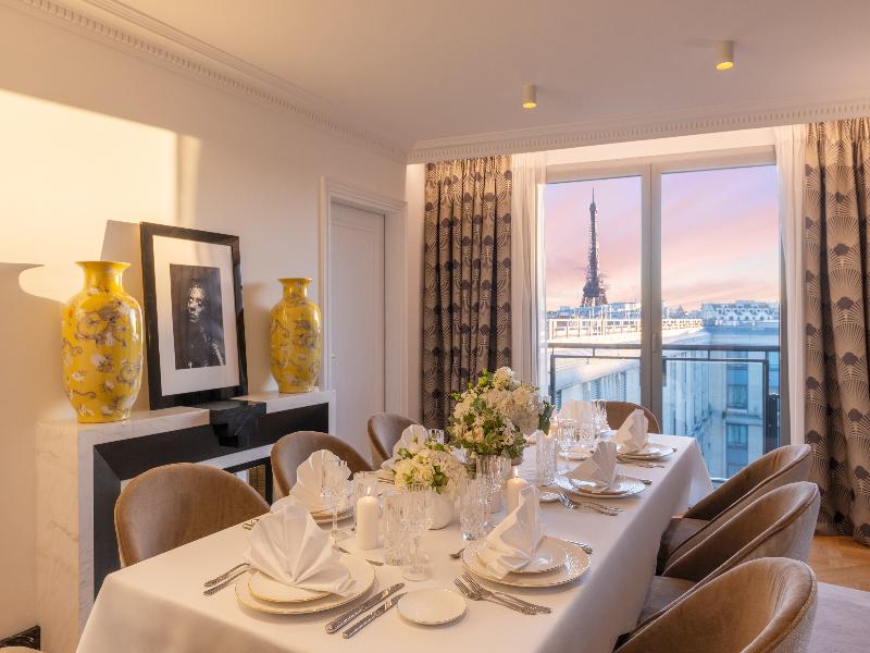 Este hotel de diseño goza de una ubicación privilegiada en el distrito más elegante y exclusivo de París, con galerías de arte, boutiques de lujo y atracciones como el Arc de Triomphe a pocos pasos. Las habitaciones del hotel están decoradas con el más refinado estilo Art Déco, con materiales exquisitos, exóticos y preciosos, como ébano de Macassar, jade verde oriental y granito negro. Los huéspedes pueden disfrutar de una copa en el bar, con sus cómodos sofás y sillones que crean un ambiente acogedor. El restaurante del hotel ofrece cocina tradicional parisina estilo brasserie, así como platos internacionales. Los sillones de terciopelo y la decoración de granito negro completan el estilo Art Déco de este restaurante parisino, que también cuenta con 3 terrazas. Tanto los huéspedes en viaje de negocios como los parisinos más elegantes pueden saborear la cocina internacional con un toque asiático que se sirve, así como disfrutar del agua y el vino de la propia marca del restaurante.