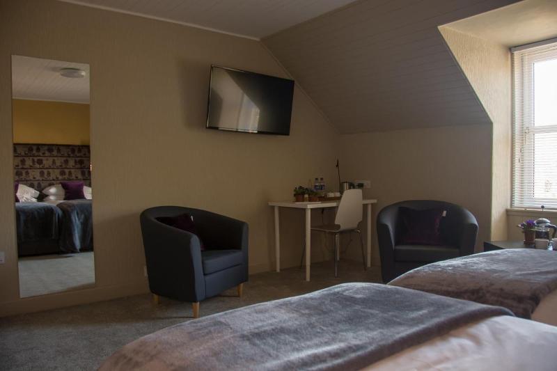 Ubicado en Tarbert, The House at Glenbarr se encuentra en una zona rural, a 1 minuto en coche de Glenbarr Abbey y a 9 minutos de Machrihanish Beach. Este bed & breakfast está a 16 km de Achamore Gardens y a 28, 6 km de Machrihanish Golf Club. Disfruta de las vistas desde la terraza y aprovecha servicios como conexión inalámbrica a internet gratuita y tiendas de regalos/quiosco. Tendrás a tu disposición atención multilingüe y consigna de equipaje. Se ofrece servicio de transporte al aeropuerto (ida y vuelta) de pago (previa solicitud) y aparcamiento sin asistencia gratuito. Sacia tu apetito en la cafetería de este bed & breakfast. Se sirve un desayuno continental gratuito todos los días de 7:00 a 10:00. Alójate en una de las 4 habitaciones con televisión de pantalla plana. La conexión a Internet wifi gratis te mantendrá en contacto con los tuyos; también podrás ver tu programa favorito en el televisor con canales por satélite. El cuarto de baño está provisto de artículos de higiene personal gratuitos y secadores de pelo. Entre las comodidades, se incluyen cafetera y tetera y agua embotellada gratuita, además de un servicio de limpieza disponible todos los días.