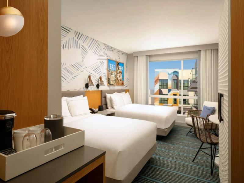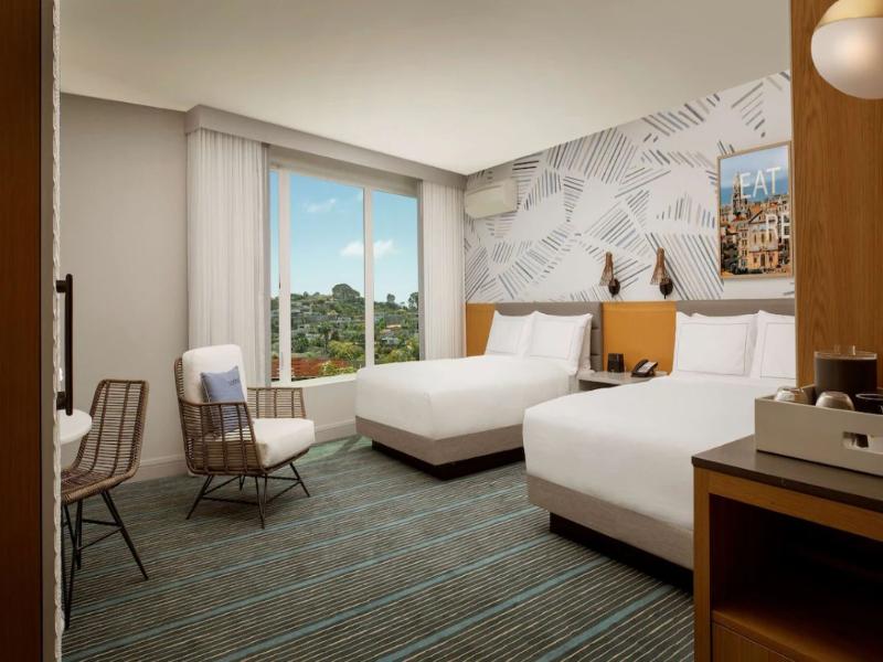 A pasos de Fisherman's Landing, estamos a menos de cinco minutos del centro y de SeaWorld, y a menos de tres kilómetros de la playa Sunset Cliffs. Restaurantes emblemáticos de San Diego, como Point Loma Seafood, se encuentran a poca distancia a pie. Un hermoso restaurante, un patio con eventos de inspiración local, una cafetería tostadora de café y un bar de cócteles completan la relajada atmósfera de San Diego.