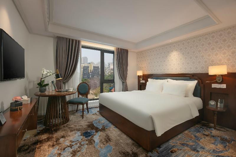 El Oriental Jade Hotel & Spa es un hotel de primera clase de 5 estrellas en el corazón de Hanói, diseñado para una estancia relajante y cómoda. Ofrecemos una variedad de servicios excepcionales, que incluyen un restaurante, spa, piscina y un bar en la azotea con vistas panorámicas de la ciudad. Nuestras 120 habitaciones y suites ofrecen impresionantes vistas del lago Hoan Kiem, la Catedral y el barrio antiguo de Hanói. Cada habitación cuenta con comodidades como televisores de pantalla plana con canales vía satélite, despertadores, adaptadores eléctricos de 220 V, wifi gratuito, cajas fuertes individuales, minibares, aire acondicionado con control individual, secadores de pelo y servicio de habitaciones hasta las 22:00, lo que te garantiza una verdadera experiencia como en casa.