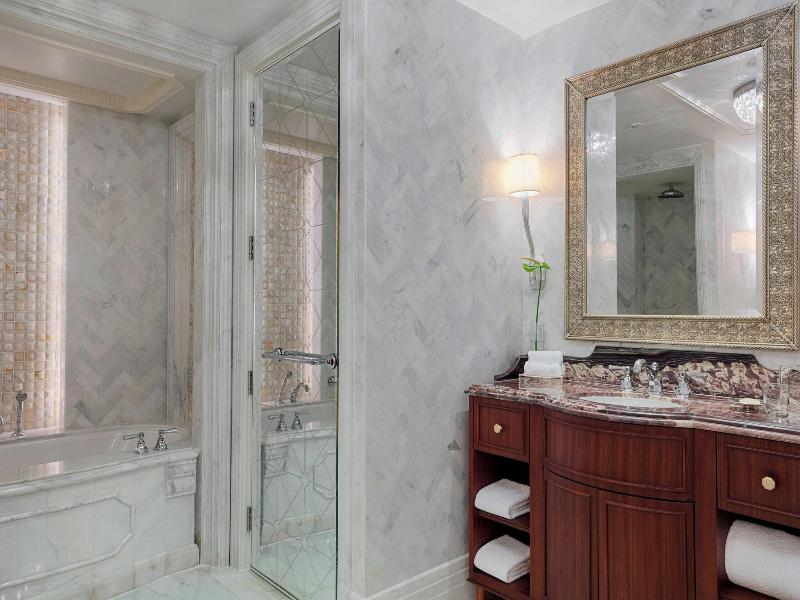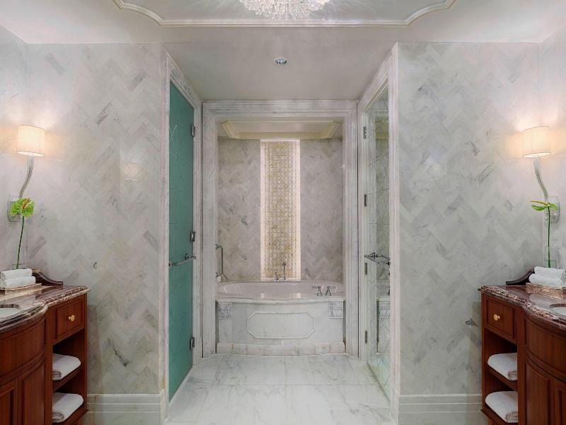 Ubicado en el corazón de Abu Dabi, The St. Regis ofrece alojamiento de lujo a pocos pasos del paseo marítimo de la Corniche y a un corto trayecto en coche de Heritage Village. Este hotel de 5 estrellas cuenta con dos piscinas al aire libre, una playa privada y un spa con todos los servicios que ofrece masajes, tratamientos corporales y faciales. Los huéspedes pueden elegir entre 283 habitaciones decoradas individualmente, cada una de ellas con soporte para iPod, televisor LED y programación por cable. Siete restaurantes, incluido el italiano Villa Toscana, ofrecen diversas opciones gastronómicas, complementadas con servicio de habitaciones las 24 horas y una cafetería. Las comodidades adicionales incluyen wifi gratuito, servicios de conserjería y un centro de negocios abierto las 24 horas.