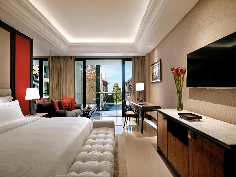 Esta joya está maravillosamente ubicada cerca de la animada y cosmopolita zona de Seminyak. El mundialmente famoso Potato Head Beach Club y Double Six Beach se encuentran a solo 15 minutos en coche. El diseño del hotel combina la rica tradición indonesia con el refinamiento contemporáneo, prometiendo un servicio inigualable. El establecimiento ofrece amplias habitaciones y suites, y villas palaciegas con piscinas privadas. Los huéspedes pueden disfrutar de un spa y gimnasio, además de una amplia variedad de opciones gastronómicas.