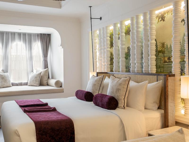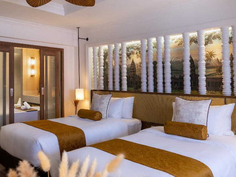 Cada habitación está inspirada en los paisajes olvidados del antiguo imperio jemer y la belleza natural de la selva camboyana. Te invitamos a explorar… Patio con cascada, escalera en zigzag. Wander by Sarai se enorgullece de crear «un sentido de pertenencia» al aprovechar la cultura y la comunidad locales para crear una identidad distintiva. Una característica que otorga una personalidad única a cada habitación y suite es la pintura detrás del pilar que imita el diseño de diamante de Angkor Wat. Estos pintores son nuestros jóvenes y talentosos artistas locales que narraron la historia de la ciudad antigua, incluyendo la cultura, las tradiciones y el estilo de vida que heredaron de sus ancestros.