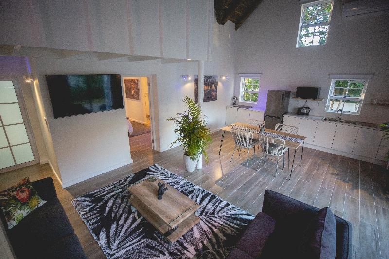 Enclavado entre viñedos de renombre mundial, theLAB Franschhoek es una moderna casa de huéspedes que ofrece una experiencia inolvidable y relajante. Date un refrescante chapuzón en la piscina al aire libre o relájate en el jacuzzi, rodeado de la belleza natural de Cape Winelands. Comienza tu día con un delicioso desayuno completo, con una variedad de opciones de comida caliente, servido a diario en el acogedor comedor de la casa de huéspedes. Para el almuerzo o la cena, da un paseo tranquilo a uno de los muchos restaurantes galardonados que se encuentran en las cercanías, algunos de los mejores que Sudáfrica tiene para ofrecer. Cada habitación de theLAB Franschhoek está cuidadosamente equipada con un sistema de música automatizado, wifi gratis, set de té y café, nevera y caja fuerte. Los baños privados incluyen artículos de aseo gratuitos y suaves albornoces para mayor comodidad. Un favorito entre las parejas, es perfecto para una escapada romántica o con amigos.