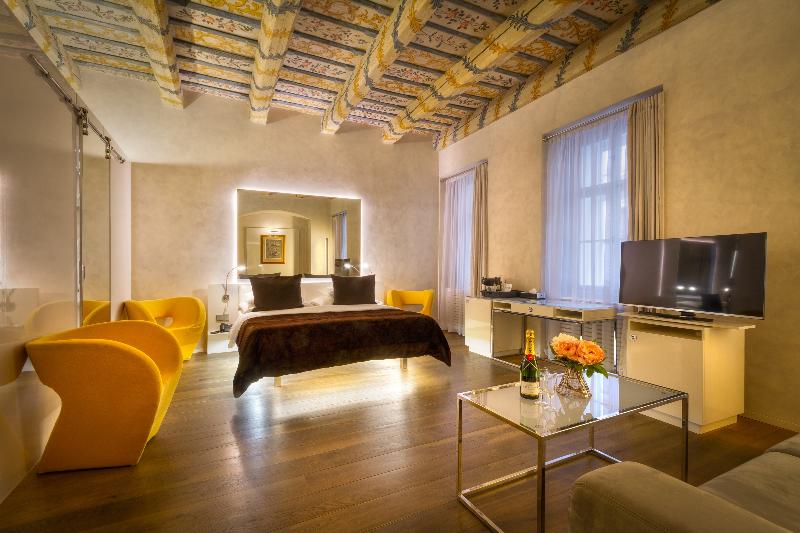 Ubicado en Malá Strana, Praga, el lujoso hotel de diseño Three Storks se encuentra en un edificio histórico que data del siglo XIV, cuando albergaba una cervecería monástica. El Puente de Carlos está a solo 5 minutos a pie. El Three Storks ofrece habitaciones con muebles de diseño, baños ultramodernos y aire acondicionado con control individual. Todas las habitaciones están equipadas con TV de pantalla plana vía satélite, reproductores de DVD con una amplia selección de películas y wifi gratis. Todas las habitaciones ofrecen vistas a los tejados rojos de la ciudad, pero las mejores también tienen vistas al Castillo de Praga, que se encuentra a 300 metros. El elegante bar del vestíbulo cuenta con una extensa carta de bebidas y un patio cubierto con techo de cristal. El Three Storks Hotel también ofrece un servicio de transporte (para grupos de 4 a 8 personas) desde y hacia el aeropuerto de Praga Ruzyne y la estación de tren Hlavní Nádrazí.
