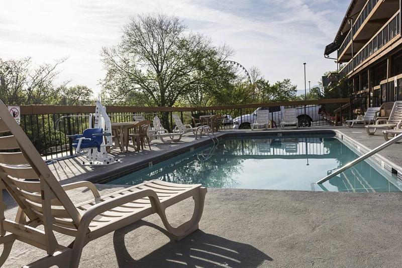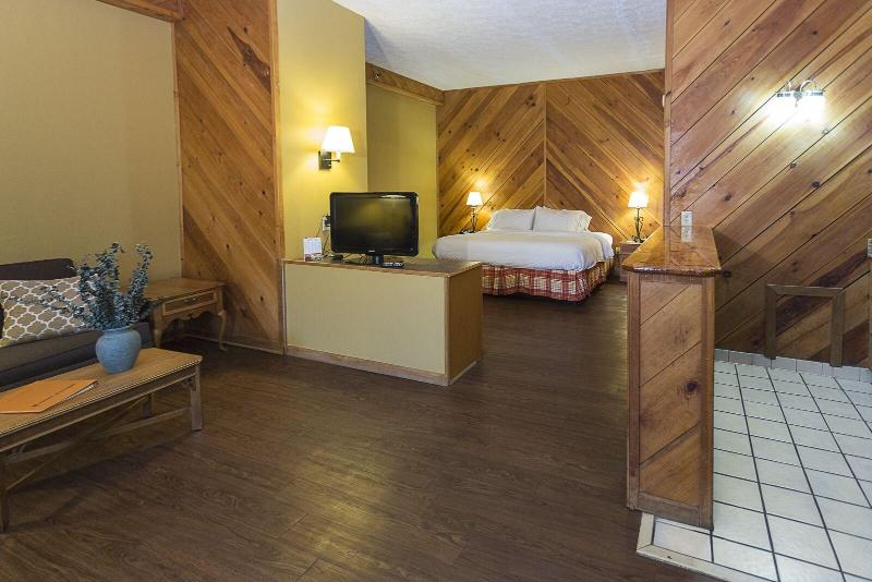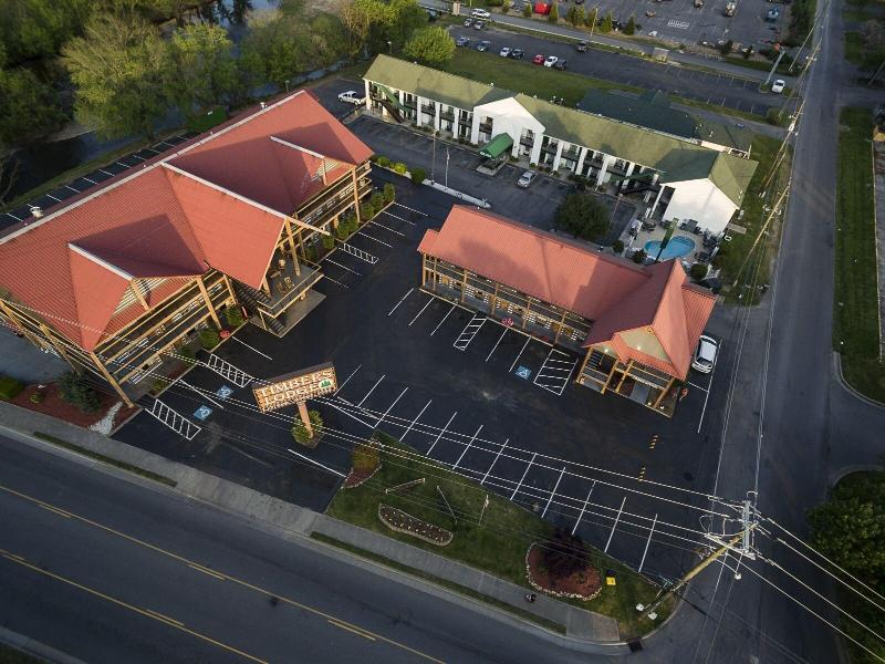 Disfruta de una cómoda estancia en Timbers Lodge, ubicado en el corazón del centro de Pigeon Forge, a pocos pasos de Island at Pigeon Forge y Christmas Place. Comienza tu día con un desayuno autoservicio de cortesía antes de darte un chapuzón en la piscina exterior de temporada. El hotel ofrece 53 habitaciones equipadas con refrigeradores, microondas, televisores LED de 40 pulgadas y wifi gratuito. Las comodidades adicionales incluyen estacionamiento gratuito, ascensor y una acogedora chimenea en el vestíbulo. Las atracciones cercanas incluyen The Track, Arcade City y Great Smoky Mountain Wheel. El aeropuerto McGhee Tyson (TYS) está aproximadamente a 57, 3 km.