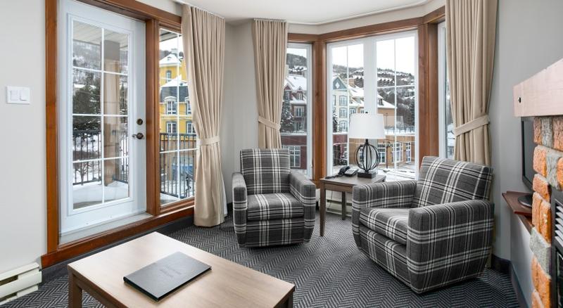 Este atractivo hotel está ubicado en el pintoresco Mont Tremblant, rodeado de una variedad de bares, restaurantes y discotecas. El transporte público es fácilmente accesible a poca distancia. La zona es ideal para quienes buscan un acceso cómodo a magníficas pistas de esquí, ciclismo y senderismo. Inaugurado en el año 2000, este hotel totalmente climatizado ofrece 220 habitaciones distribuidas en cuatro plantas, incluyendo 100 apartamentos, 20 suites y dos habitaciones adaptadas para personas con movilidad reducida. El acogedor vestíbulo cuenta con recepción 24 horas, caja fuerte, servicio de cambio de divisa, guardarropa y ascensor. Los huéspedes pueden disfrutar de servicios como quiosco de prensa, tienda y teatro. Las opciones gastronómicas incluyen un acogedor bar, una agradable cafetería y un restaurante climatizado con tronas para niños. Hay un parque infantil y un club infantil supervisado para los más pequeños. Quienes viajan por negocios pueden utilizar la sala de conferencias, y el acceso a internet está disponible en todo el hotel. También se ofrecen servicios de lavandería y asistencia médica. Los huéspedes que lleguen en coche pueden utilizar el aparcamiento y el garaje del hotel, mientras que el alquiler y el almacenamiento de bicicletas están disponibles en las instalaciones. Las habitaciones, decoradas con buen gusto, cuentan con suelo enmoquetado y baño privado con bañera y secador de pelo. Cada habitación incluye una cama doble, teléfono de línea directa, caja fuerte, televisión por satélite/cable, radio, equipo de música, nevera, plancha y tabla de planchar. Los huéspedes también pueden disfrutar de acceso a internet en la habitación y facilidades para preparar té y café. La climatización y la calefacción reguladas centralmente son estándar, al igual que el balcón o la terraza. Los apartamentos también están equipados con una pequeña cocina, con horno y microondas.