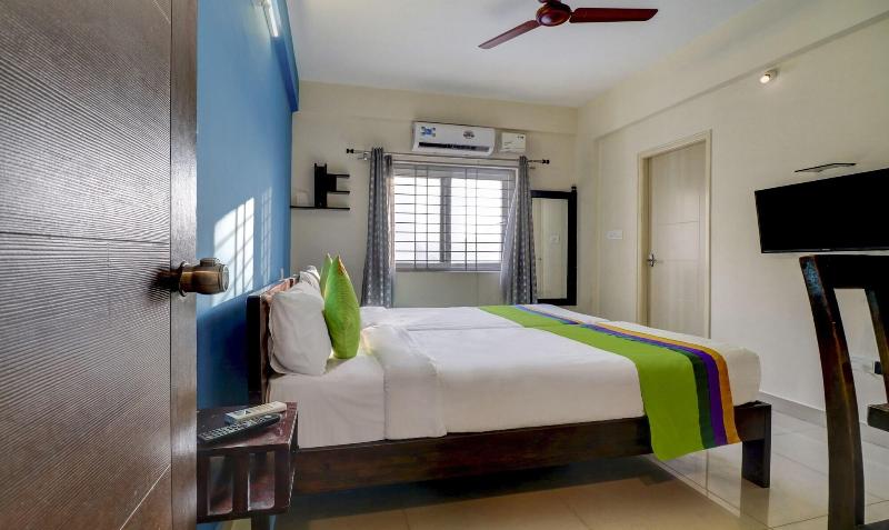 Alójate en el hotel Treebo 12 Degrees West Domlur en Bengaluru, convenientemente ubicado a 10 minutos en coche de M. G. Road y Cubbon Park. Este hotel ofrece 21 habitaciones decoradas individualmente, cada una con wifi gratis, escritorio, ventilador de techo y baño con ducha y artículos de aseo gratuitos. Disfruta del servicio de habitaciones (con horario limitado) o cena en el Gujjubhai Restaurant. Las comodidades adicionales incluyen recepción 24 horas, servicio de lavandería y ascensor. Las atracciones cercanas incluyen el Karnataka Golf Course (1, 6 km), el Manipal Hospital HAL Airport Road (1, 9 km) y el St. John’s Medical College (3, 8 km). El Kempegowda Intl. Airport (BLR) está a 40, 4 km.