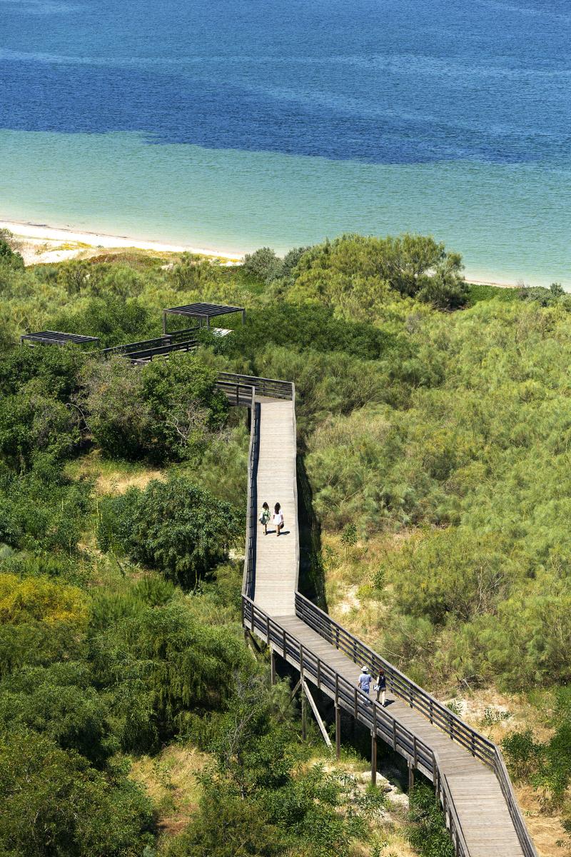 Este moderno resort se encuentra frente al estuario del río Sado e impresiona por su diseño único, así como por su ubicación en la península de Tróia. Está justo al lado del puerto deportivo y a solo una hora del aeropuerto de Lisboa. Aquí, las magníficas vistas al mar solo son superadas por el misterio de la sierra de Arrábida. Desde tu balcón, podrás observar delfines retozando en el mar o disfrutar de un programa en el televisor de pantalla plana. El hotel cuenta con un gran centro de conferencias y un espacio para espectáculos, perfecto para eventos especiales de cualquier tipo. Ofrece una variedad de lujosas habitaciones y suites. Todas han sido diseñadas pensando en tu comodidad y cuentan con un mobiliario contemporáneo distintivo. El uso del cristal para crear diferentes ambientes da a las habitaciones una sensación de amplitud, destacando la relación única entre los interiores del edificio y el paisaje natural. La colección de muebles está diseñada exclusivamente para el hotel.