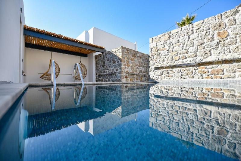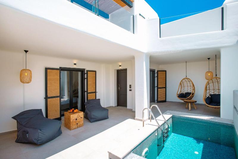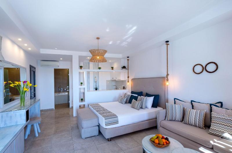 Disfruta de una experiencia de puro lujo en el spa de servicio completo, que ofrece masajes, tratamientos corporales y faciales. Aprovecha las instalaciones recreativas del hotel, que incluyen un gimnasio, bañera de hidromasaje y sauna. Este hotel también ofrece wifi gratis, servicios de conserjería y una peluquería. Disfruta de una comida en el restaurante del hotel o pide servicio a la habitación en horario limitado. Relájate con una bebida en uno de los tres bares o lounges o en los cuatro bares junto a la piscina. Se sirve desayuno buffet todos los días con un coste adicional (de 8:00 a 11:00). Los servicios adicionales incluyen servicio de tintorería/lavandería, recepción 24 horas y consigna de equipaje. Hay servicio de traslado de ida y vuelta al aeropuerto y a la terminal de ferris por un suplemento. Cada una de las 72 habitaciones con aire acondicionado cuenta con frigorífico, Smart TV y un patio privado amueblado. Dispondrás de wifi gratis y televisión por cable. Los baños privados incluyen ducha, artículos de aseo gratuitos y secador de pelo. El hotel, situado cerca de Kalamopódi y Paradise Beach, también se encuentra a poca distancia de las playas de Paranga, Agia Anna y Platis Gialos.