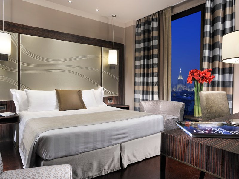 El Palacio de Uptown es un hotel moderno y elegante a muy poca distancia de la estación de metro Missori (línea amarilla), desde la plaza de la Catedral Plaza de la Catedral y de las calles de Milán comerciales más famosas.La especial atención prestada a cada invitado es posible gracias a nuestra selecta y altamente cualificado personal multilingüe. El hotel cuenta con 158 habitaciones insonorizadas, las camas tienen ropa de cama LinoVivo (el único hotel de 4 estrellas en Milán para ofrecer este plus) y la última generación de colchones Simmons. Los suelos son de parquet o alfombras y las áreas públicas son de mármol.Cada habitación dispone de TV LCD y baño privado, con ducha o bañera, batas de baño suaves, zapatillas, secador de pelo y amenidades elegantes. Algunas de las habitaciones en los pisos superiores ofrecen maravillosas vistas de la catedral y los tejados de la capital lombarda.
