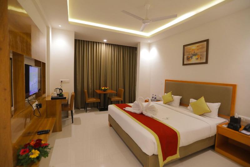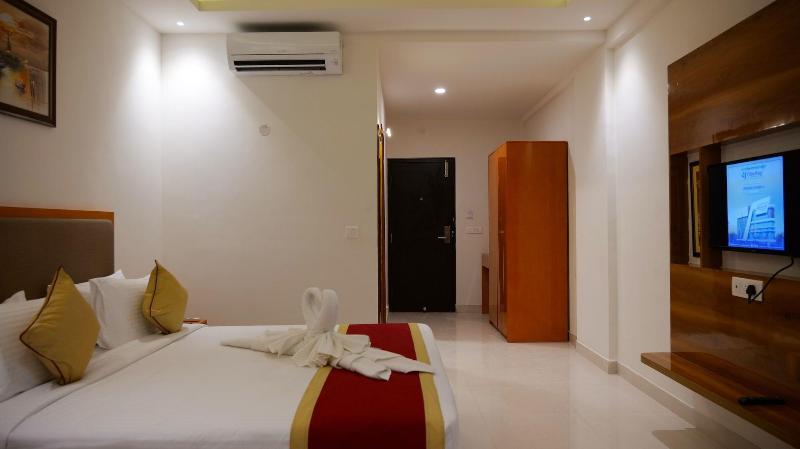 Al alojarte en el V One Hotel-Ambara Elite en Bangalore (Bagalakunte), estarás a 15 minutos en coche del Templo ISKCON y del Mount Carmel College. Este hotel se encuentra a 8, 5 km del Orion Mall y a 10, 3 km del M. S. Ramaiah Institute of Technology. Disfruta de comodidades como wifi gratis, servicio de conserjería y un salón de belleza. Este hotel también ofrece servicios de organización de bodas, una chimenea en el vestíbulo y un salón de baile. Tendrás a tu disposición una estación de ordenadores, periódicos gratuitos en el vestíbulo y servicio de tintorería/lavandería. Hay aparcamiento gratuito con servicio de aparcacoches en las instalaciones. Come algo en Valentino Vegetarian, uno de los 4 restaurantes de este hotel, o simplemente quédate en tu habitación y disfruta del servicio de habitaciones las 24 horas. Socializa con otros huéspedes en la recepción gratuita, que se celebra a diario. Y para terminar el día, tómate una copa en el bar o lounge. Regálate una estancia en una de las 46 habitaciones individualmente decoradas, que incluyen chimenea y televisión de pantalla plana. La conexión a Internet wifi gratis te mantendrá conectado y la programación por satélite te proporcionará entretenimiento. Entre las comodidades, se incluyen teléfono, caja fuerte y escritorio.