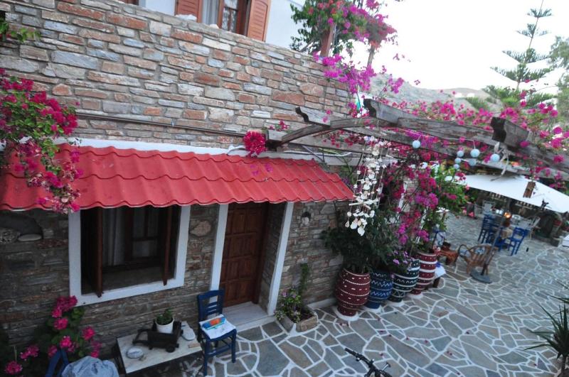 A pocos pasos de las arenas de la playa de Yialos y a un corto paseo del encantador pueblo de Chora, Villa Mata ofrece una escapada tranquila en la hermosa isla de Ios. Completamente renovada en 2019, esta casa de huéspedes de construcción tradicional cuenta con dos edificios enclavados en un pintoresco jardín. Las habitaciones combinan a la perfección el estilo egeo con comodidades modernas, incluyendo baño privado, TV a color, mini nevera y balcón con vistas al mar y/o al jardín. Algunas habitaciones también cuentan con cocina americana. Los huéspedes pueden disfrutar de prácticas comodidades como servicio de limpieza diario, caja fuerte, zona de barbacoa y aparcamiento en las instalaciones. Al llegar al puerto, gira a la izquierda hacia la playa. Villa Mata se encuentra junto al Hotel Irini & Vicky, entre los cafés Tropicana y Doors.