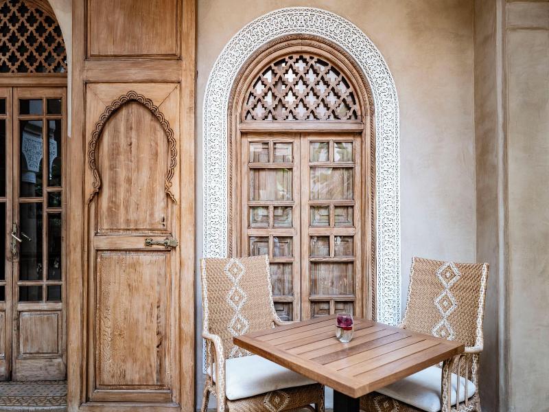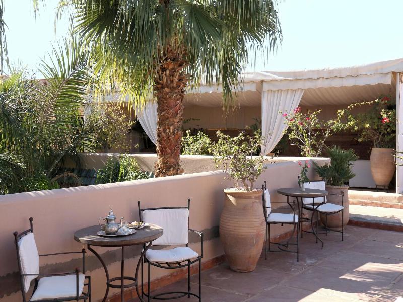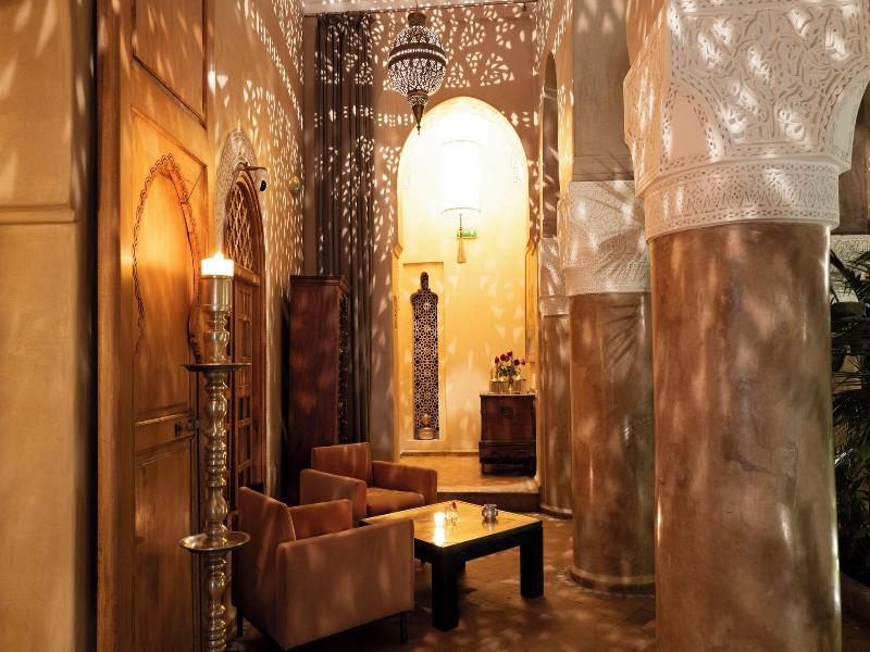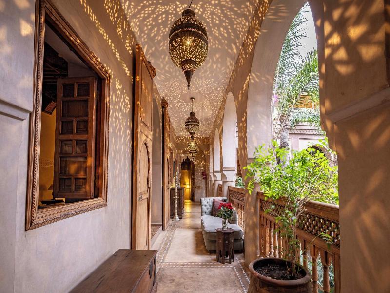 Las 12 habitaciones y suites del hotel se encuentran alrededor del patio en 2 plantas y están decoradas con gusto, originalidad y una atención continua por el refinamiento. Los muebles y objetos decorativos han sido exclusivamente diseñados y creados aquí por artesanos marroquíes. El murmullo de las cristalinas aguas de la fuente se puede distinguir por encima del barullo de los bazares, mientras que una pesada puerta está discretamente entreabierta entre las antiguas fachadas de la ciudad antigua (medina) y da a uno de los más famosos 'riad' de Marrakech. Este establecimiento con aire acondicionado dispone de vestíbulo, recepción 24 horas, caja fuerte, restaurante, conexión a Internet y servicio de lavandería.