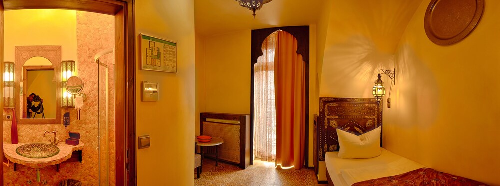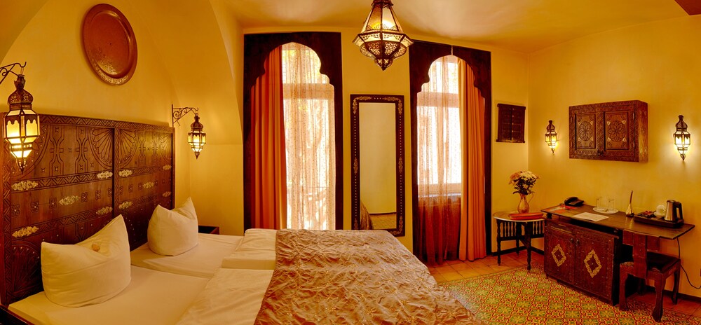 El hotel Villa Oriental de 4 estrellas ofrece un alojamiento de estilo oriental en el corazón de Frankfurt. Está cerca de los principales lugares turísticos de la ciudad, así como de los destinos turísticos más conocidos. La principal estación de trenes se halla a 400 metros a pie; desde aquí puedes llegar al aeropuerto de Frankfurt en aproximadamente 20 minutos. El Centro de Exposiciones de Frankfurt y el centro de la ciudad se encuentran ambos a 1,5 km del hotel y están bien comunicados con transporte público.Las 24 habitaciones de temática oriental se han decorado con mucho estilo en colores cálidos y diseños étnicos. Las habitaciones cuentan con aire acondicionado, televisión por satélite y banda ancha. En el restaurante Persian Hafez Restaurant se sirven una gran variedad de sabrosos platos y ofrece acceso gratuito WiFi a Internet.