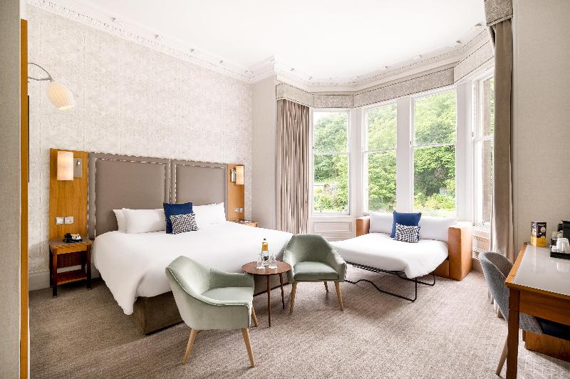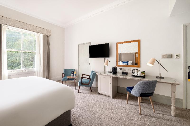 El voco™ Edinburgh - Royal Terrace se encuentra ubicado en medio de históricos jardines en el límite de la Ciudad Nueva de Edimburgo. El voco™ Edinburgh - Royal Terrace está a 10 minutos a pie de la estación Edinburgh Waverly y a 25 minutos en taxi del Aeropuerto de Edimburgo. Estarás a tan solo 20 minutos a pie del Castillo de Edimburgo. El Museo Nacional de Escocia, el Palacio de Holyroodhouse y las principales calles comerciales de la ciudad se encuentran a pasos del hotel, junto con el nuevo St. James Quarter. Con exteriores cautivadores e interiores elegantes, nuestros anfitriones cálidos y genuinos te ofrecen la verdadera hospitalidad escocesa, haciendo de nuestro hotel tu 'hogar fuera de casa' con espacios únicos para compartir y conectar. El hotel alberga el Terrace Restaurant and Garden, donde los huéspedes pueden disfrutar de un pedacito de naturaleza en plena ciudad. Además, The Nook, que exhibe la escena del whisky escocés, ofrece cócteles exclusivos y una extensa carta de whiskies.
