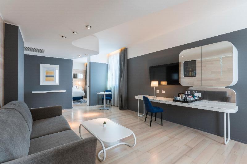 Nuestro nuevo hotel, voco® Milan-Fiere, se encuentra a pocos pasos de Fiera Milano, el centro de convenciones MiCo y el distrito de innovación MIND Milano. Con una ubicación ideal a solo dos minutos de las autopistas A4 y A8, el hotel ofrece excelentes conexiones con el centro de Milán y los aeropuertos internacionales de la ciudad, Linate (LIN) y Malpensa (MXP). De la mañana a la noche, tendrás el espacio que necesitas para relajarte, socializar y disfrutar. Disfruta de un merecido 'tiempo para ti' en nuestras habitaciones Estándar, Premium o Suites, que cuentan con ropa de cama cómoda, wifi gratuito de alta velocidad y servicio de habitaciones las 24 horas. Relájate en el spa del hotel con sauna, baño turco y piscina de inmersión, o realiza una sesión de ejercicio enérgica en nuestro gimnasio. Con espacios para eventos y reuniones con capacidad para hasta 630 personas, ideales para cualquier ocasión, deja tu huella con la ayuda de nuestro amable y acogedor personal. Servimos especialidades italianas e internacionales, además de bebidas, en nuestro restaurante OnFire, que cuenta con una parrilla a la vista, y en nuestro bar Ludico con zona de juegos, lo que garantiza que tus almuerzos, cenas y aperitivos sean un éxito rotundo y una experiencia memorable durante tu estancia.