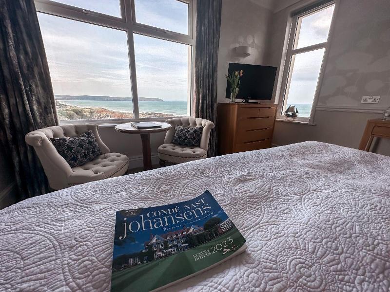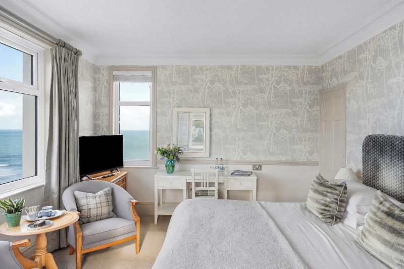 Al alojarte en el Watersmeet Hotel en Woolacombe, estarás en la playa, a 15 minutos a pie de Woolacombe Beach y de Combesgate Beach. Este hotel de 4 estrellas está a 18, 7 km de Exmoor National Park y a 11, 3 km de Saunton Sands. Relájate en el spa completo, donde puedes disfrutar de masajes y tratamientos faciales. Puedes aprovechar las instalaciones recreativas, que incluyen piscina cubierta, baño turco y piscina de temporada al aire libre. Tendrás periódicos gratuitos en el vestíbulo, servicio de tintorería/lavandería y consigna de equipaje a tu disposición. Hay un aparcamiento sin asistencia gratuito disponible. Sacia tu apetito en uno de los 2 restaurantes del hotel. Pon punto y final a tu día con una bebida en el bar o lounge. Se sirve un desayuno gratuito a la carta todos los días de 8:00 a 10:00. Te sentirás como en casa en una de las 26 habitaciones. La conexión a Internet wifi gratis te mantendrá en contacto con los tuyos; también podrás ver la programación digital. El baño privado está provisto de artículos de higiene personal de diseño y secadores de pelo. Tendrás también teléfono, escritorio y cafetera y tetera a tu disposición.