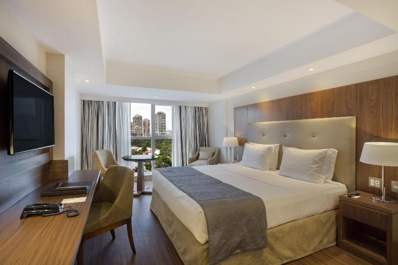 El flamante Windsor Marapendi Hotel se encuentra justo frente a la hermosa playa de Barra da Tijuca, lo que te brinda fácil acceso a todo lo que este moderno distrito de Río de Janeiro tiene para ofrecer. Disfruta de una estadía fantástica admirando una de las mejores vistas de Río en este hotel 5 estrellas, que ofrece una gran variedad de opciones de entretenimiento, deliciosa gastronomía y un servicio excepcional. La naturaleza abunda en los alrededores, con parques y reservas naturales que brindan amplias oportunidades para la diversión y las actividades al aire libre. También encontrarás cerca una vida nocturna rica y diversa, y algunos de los centros comerciales más sofisticados de Río. La elegante decoración del hotel se caracteriza por el amplio uso de cálida madera proveniente de plantaciones reforestadas en todo el vestíbulo, el bar, el restaurante y las habitaciones. Sus 487 habitaciones bellamente amuebladas ofrecen vistas completas o parciales al mar o a la montaña. La azotea, rodeada de barandillas de vidrio, es el lugar perfecto para disfrutar de impresionantes vistas a la playa y de un inolvidable baño en la piscina. El Windsor Marapendi está pensado tanto para turistas como para viajeros de negocios, con instalaciones para eventos, amplias salas de reuniones y un centro de negocios. Es una excelente opción para unas vacaciones familiares o un viaje de negocios inolvidables en Río de Janeiro.