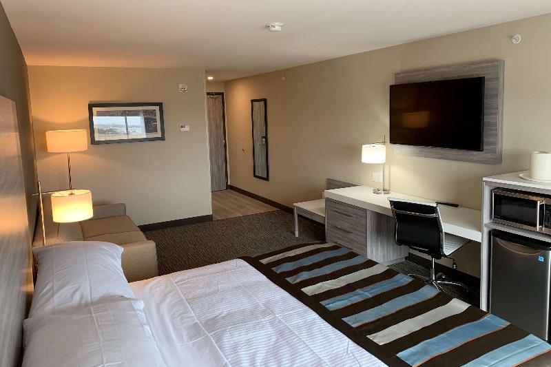 Únete a nosotros en el Wingate by Wyndham Kanata West Ottawa, convenientemente ubicado junto a la Trans-Canada Highway y a 30 kilómetros del Ottawa International Airport (YOW). A pocos minutos encontrarás ofertas en Tanger® Outlets Ottawa y emocionantes partidos de hockey de los Senators en el Canadian Tire Centre. Nuestro hotel contemporáneo, libre de humo, también se encuentra a poca distancia en auto de la University of Ottawa y de atracciones del centro como Parliament Hill. Quienes viajan por negocios valorarán nuestra ubicación a solo nueve kilómetros del Kanata North Technology Park. Durante tu estadía, disfruta de desayuno y wifi de cortesía, junto con acceso a nuestro gimnasio, piscina y bar en el hotel. Las habitaciones cuentan con un diseño moderno, refrigerador, microondas y acceso a internet de alta velocidad por cable e inalámbrico, incluyendo Google Chromecast. Mantén tu rutina de ejercicios en nuestro gimnasio abierto las 24 horas y relájate en nuestra luminosa y espaciosa área de piscina cubierta. Disfruta de una bebida y un bocadillo en nuestro bar y cocina. Para necesidades de último minuto, visita nuestro MarketPlace en el lobby.