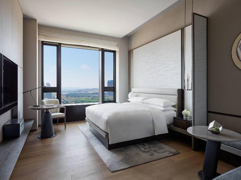 Ubicado en el distrito Hongshan de Wuhan, el Wuhan Marriott Hotel Optics Valley se encuentra a 15 minutos en coche de la Huazhong University of Science and Technology y la Zhongnan University of Economics and Law. Este elegante hotel está a 11, 1 km del Mingchu King's Tomb y a 13 km de la China University of Geosciences. Disfruta de opciones recreativas como un gimnasio, una piscina cubierta y una bañera de hidromasaje. El hotel también ofrece wifi gratis, servicios de conserjería y servicios para bodas. Las 331 habitaciones, decoradas de forma individual, ofrecen minibar y televisores LED, además de edredones de plumas y ropa de cama de primera calidad. El acceso a internet por cable e inalámbrico gratuito te mantiene conectado, y la programación por cable proporciona entretenimiento. Los baños privados cuentan con bañera y ducha independientes con cabezal de ducha tipo lluvia y secador de pelo. Saborea la cocina local e internacional en Goji Kitchen+Bar, uno de los tres restaurantes del hotel, o aprovecha el servicio de habitaciones las 24 horas. También hay snacks disponibles en la cafetería. Se sirve desayuno bufé todos los días de 6:30 a 11:00 con un coste adicional. Entre las comodidades adicionales se incluyen internet por cable gratuito, servicio de limusina/coche con chófer y registro de entrada exprés. Para eventos, el hotel ofrece 1050 metros cuadrados de espacio, que incluyen espacio para conferencias y nueve salas de reuniones.