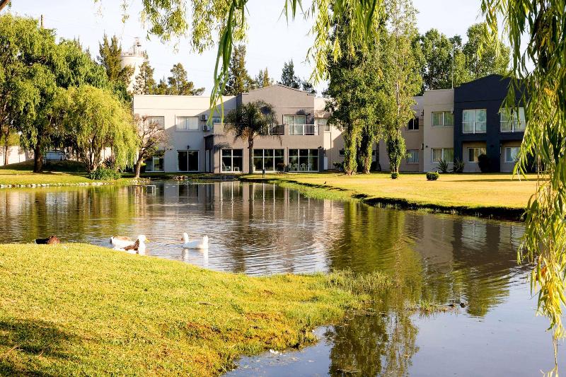 Un refugio campestre en Campana Hotel tranquilo junto a la RN9, cerca de los centros industriales de Campana y Zárate Escápate a un exuberante oasis en el corredor turístico del Paraná, con seis hectáreas de parque, una laguna artificial, tres piscinas y un amplio espacio para eventos en Wyndham Garden Campana. Ubicado junto a la RN9, a 79 kilómetros del Aeropuerto Internacional Jorge Newbery (AEP) y a 105 kilómetros del Aeropuerto Internacional de Ezeiza (EZE), nuestro hotel libre de humo es ideal para escapadas familiares y reuniones de negocios. Estarás al noroeste de Buenos Aires, entre el Parque Industrial Campana y el Parque Industrial Zárate, y cerca del Club Náutico Zárate y del Parque Nacional Ciervo de los Pantanos.