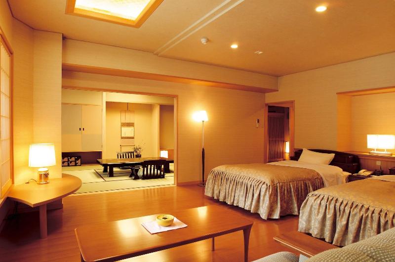 Alójate en Yumeminoyado Kansyokan en Mogami y estarás a menos de 15 minutos en coche de Semi Onsen y Yumeria. Este ryokan se encuentra a 28, 6 km de Naruko Onsen y a 15, 2 km del Furusato History Center. No te pierdas las numerosas oportunidades recreativas, como una discoteca, una piscina al aire libre y karaoke. Entre los servicios adicionales de este ryokan se incluyen wifi gratis, servicio de conserjería y un salón de baile. Tendrás consigna de equipaje y ascensor a tu disposición. Hay un aparcamiento sin asistencia gratuito disponible en las instalaciones. Sacia tu apetito en la cafetería del ryokan o aprovecha el servicio de habitaciones (con horario limitado). Pon punto y final a tu día con una bebida en el bar o lounge. Siéntete como en casa en una de las 49 habitaciones con aire acondicionado, minibar y televisor LCD. La conexión a Internet wifi gratis te mantendrá conectado y la programación por cable te ofrece entretenimiento. El baño cuenta con artículos de tocador gratuitos y secador de pelo. Entre las comodidades, se incluyen caja fuerte y escritorio, además de un servicio de limpieza disponible todos los días.