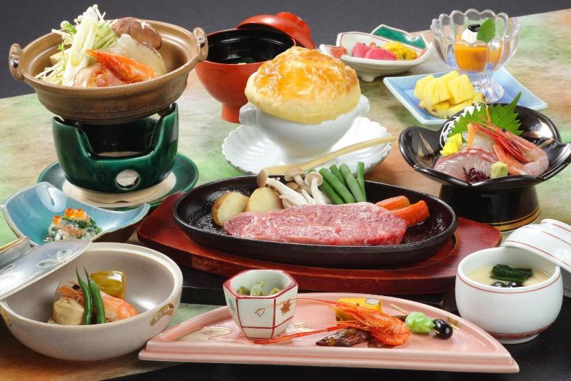 Relájate en nuestro baño de roca al aire libre, esculpido por un artista local, y disfruta de la brisa natural en nuestro pediluvio de jardín. Ofrecemos una variedad de habitaciones de estilo japonés, incluyendo estándar, superior, de lujo, económicas y ejecutivas. Cada habitación está equipada con TV, refrigerador, teléfono, caja fuerte, yukata, secador de pelo, cepillo de dientes, toallas, jabón de manos, champú, acondicionador y jabón corporal. También puedes disfrutar de nuestra fuente termal, que incluye baños al aire libre e interiores, con varias comodidades. Se sabe que la fuente termal alivia el dolor articular, la fatiga y la neuralgia. Las instalaciones adicionales incluyen una tienda de regalos, sala de fiestas y salón.