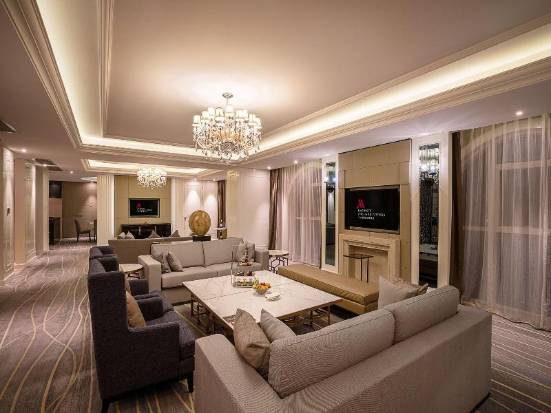 Si decides alojarte en Zhejiang Taizhou Marriott Hotel, disfrutarás de una fantástica ubicación en pleno centro de Taizhou, a 3 min en coche de Jiufeng Park of Huangyan y a 7 de Taizhou Cinnabar Heap. Además, este hotel de lujo se encuentra a 7, 8 km de Songyan Mountain y a 7, 8 km de Huangyan Grottoes. . Disfruta de tus momentos de ocio con instalaciones como un centro de bienestar abierto las 24 horas, una piscina cubierta y un baño turco. Otros servicios de este hotel incluyen conexión a Internet wifi gratis, servicios de conserjería y servicio de celebración de bodas. . Te sentirás como en tu propia casa en cualquiera de las 332 habitaciones con frigorífico y minibar. Para los momentos de ocio, tendrás una televisión LCD de 48 pulgadas con canales por satélite y conexión a Internet por cable y wifi gratis. El cuarto de baño está provisto de bañera y ducha independientes, artículos de higiene personal gratuitos y secadores de pelo. Entre las comodidades, se incluyen caja fuerte, escritorio y teléfono. . Acércate a uno de los 2 restaurantes de este hotel para comer algo, o aprovecha el servicio de habitaciones las 24 horas. Qué mejor forma de acabar el día que con una bebida en el bar o lounge. Se ofrece un desayuno bufé todos los días de 06:30 a 10:00 con un coste adicional. . Tendrás conexión a Internet por cable gratis, un centro de negocios y check-in exprés a tu disposición.